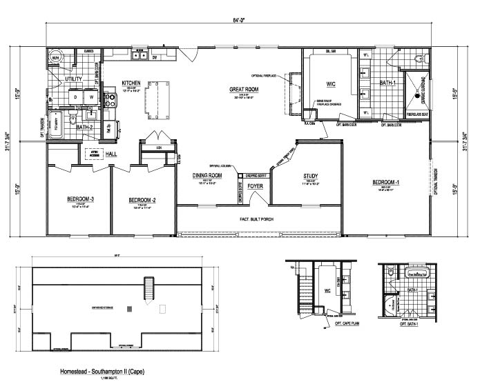 Includes standard setup, delivery, HVAC for the main floor, water and waste tie-ins, and all factory options shown